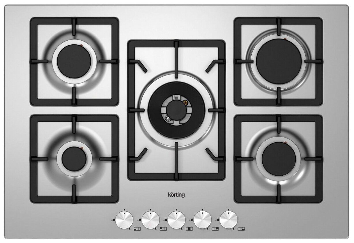 Газовая варочная поверхность Korting HG 797CTX Crystal с ней процесс приготовления может быть одновременно приятным и достаточно быстрым: пять конфорок, в том числе «тройная корона» для отличных быстрых результатов, и плита Wok.