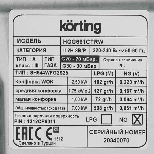 Скачать документы для Газовая варочная панель Korting HGG 691 CTRW Byzantium