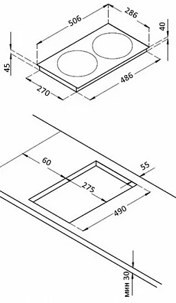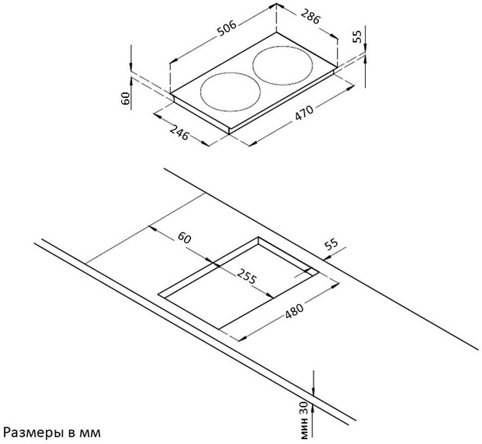 Размеры конфорок