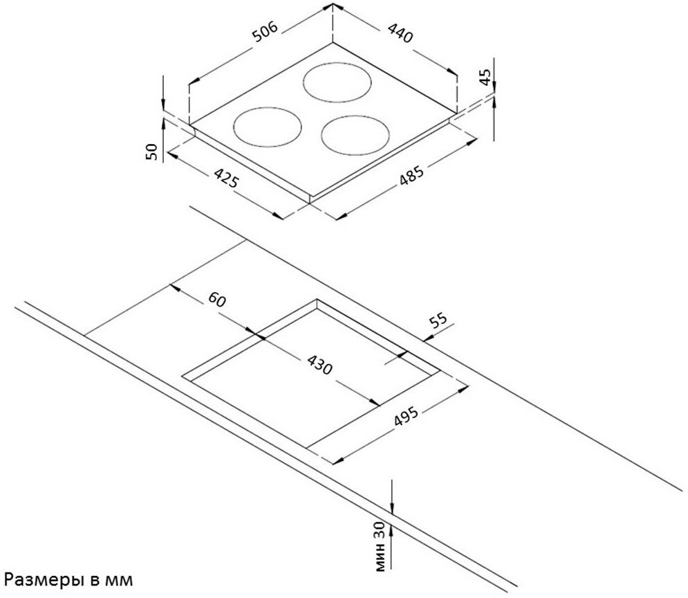 Размеры конфорок