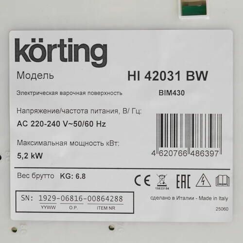 Скачать документы для Варочная поверхность Korting HI 42031 BW