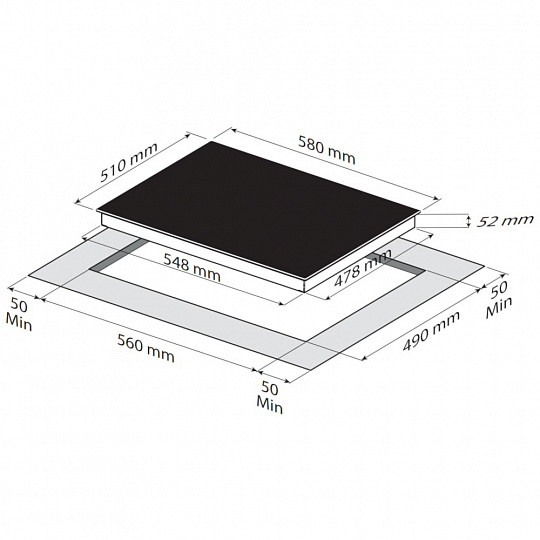 Особенностью данной модели является наличие двух высокоэффективных и экономичных индукционных горелок. Во время его работы тепло выделяется непосредственно на дне посуды без промежуточного нагрева. В результате потребление энергии значительно ниже по сравнению с обычными нагревательными элементами, основанными на принципе теплового излучения. Пластина имеет индукционные катушки, которые расположены под стеклокерамической поверхностью и создают электромагнитное поле, которое индуцирует ток на дне чаши, вызывающий нагрев.