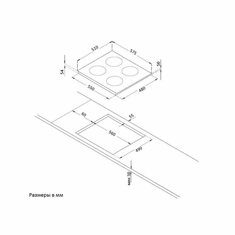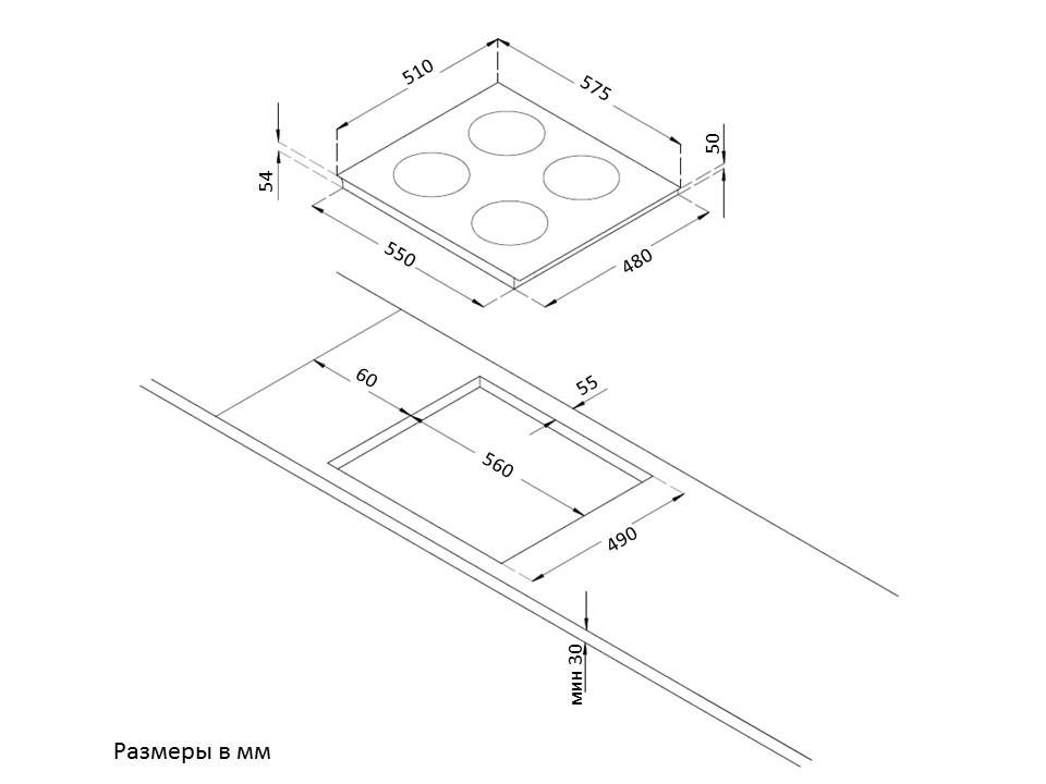 Размеры конфорок