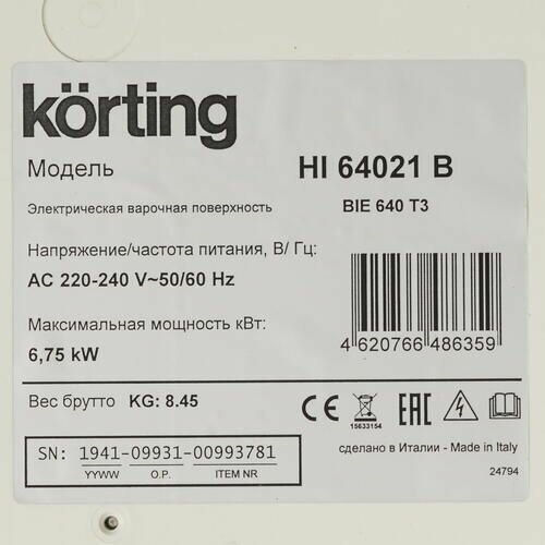 Варочная поверхность Korting HI 64021 B