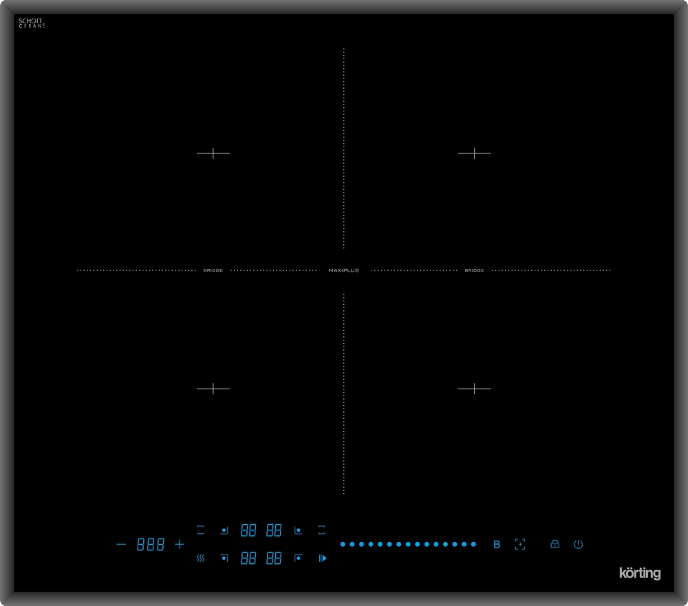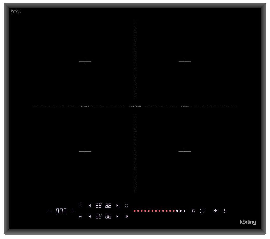 Индукционная варочная поверхность Korting HIB 64940 B Maxi - одной из особенностей представленной модели является наличие в комплекте сковороды с крышкой, которая по диаметру и конструкции дна идеально подходит для приготовления пищи на одной из конфорок данного устройства. Функциональность варочной панели объединена с функциями удержания и паузы, а также с режимом быстрого нагрева «Booster».