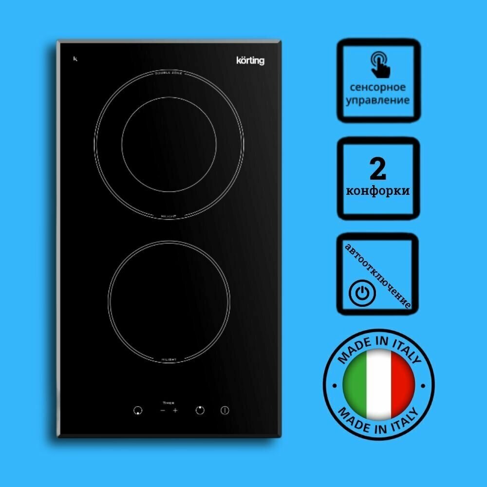 Электрическая варочная поверхность Korting HK 32033 B- с мощностью подключения 3,65 кВт, он оснащен двумя конфорками и подходит для небольших кухонь. Владельцы данной модели получат возможность использовать большие и малые зоны нагрева, в том числе в одно касание.