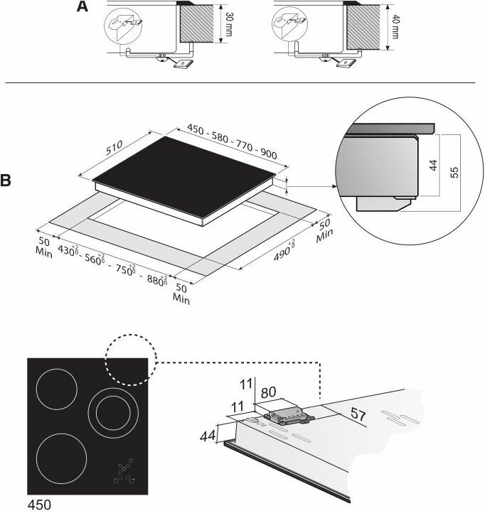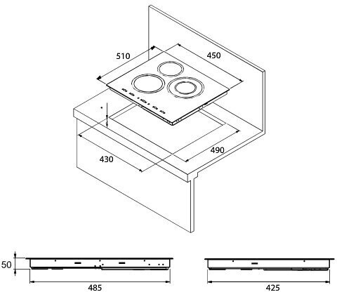 Тип управления: электронный, Размер ниши (Ш*Г): 430*495 мм, Размещение панели управления: спереди/справа, Края панели: скошенные