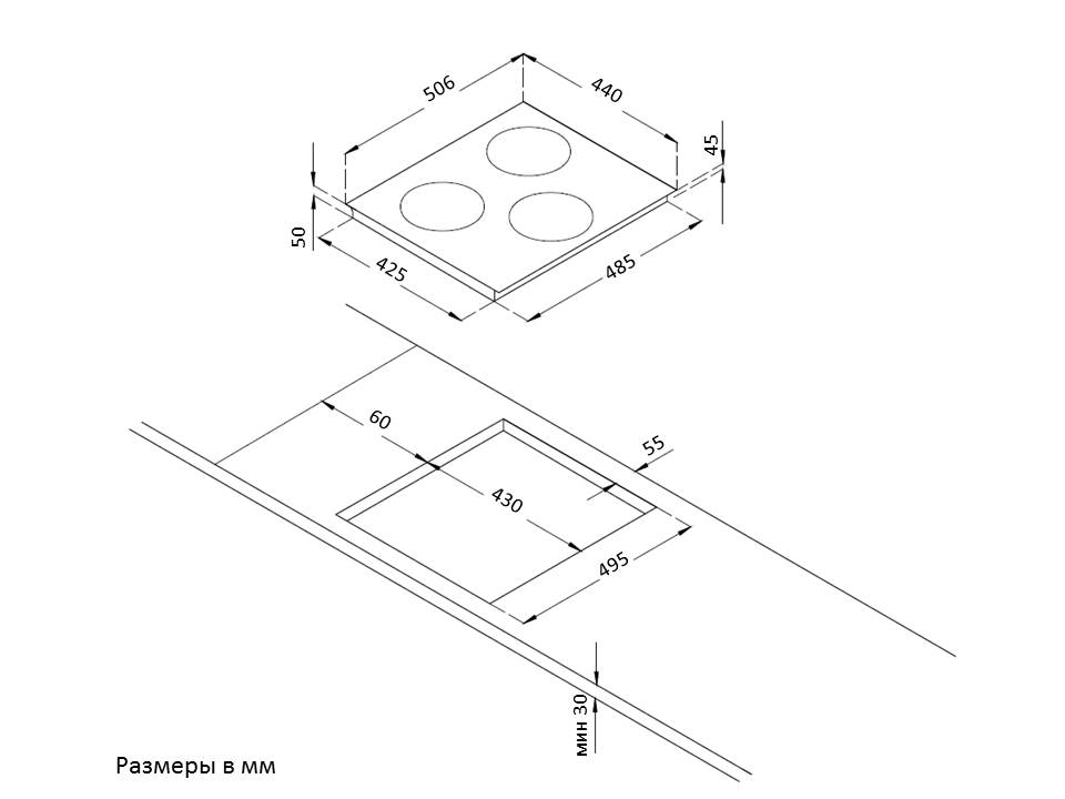 Размеры конфорок