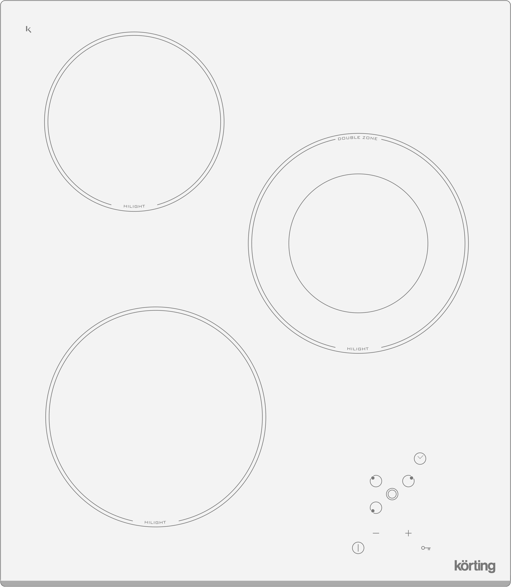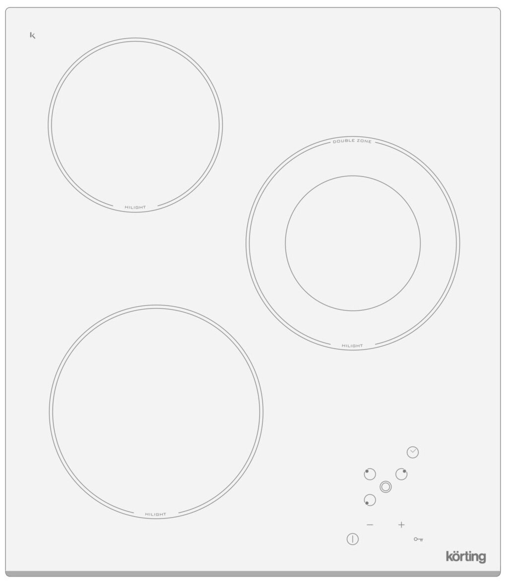 Электрическая варочная поверхность Korting HK 42031 BW- в его конструкции предусмотрено наличие 3-х конфорок разного диаметра (120 мм, 145 мм, 180 мм). Одна из конфорок имеет два контура, что позволяет использовать ее для приготовления больших и маленьких блюд.