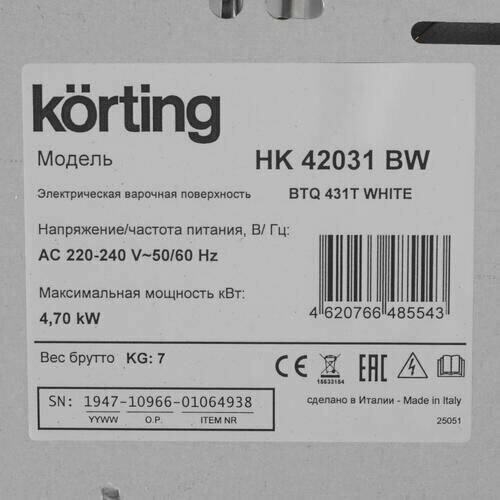 Скачать документы для Варочная поверхность Korting HK 42031 BW