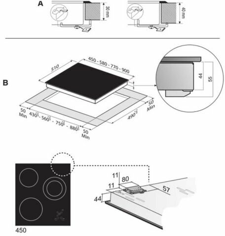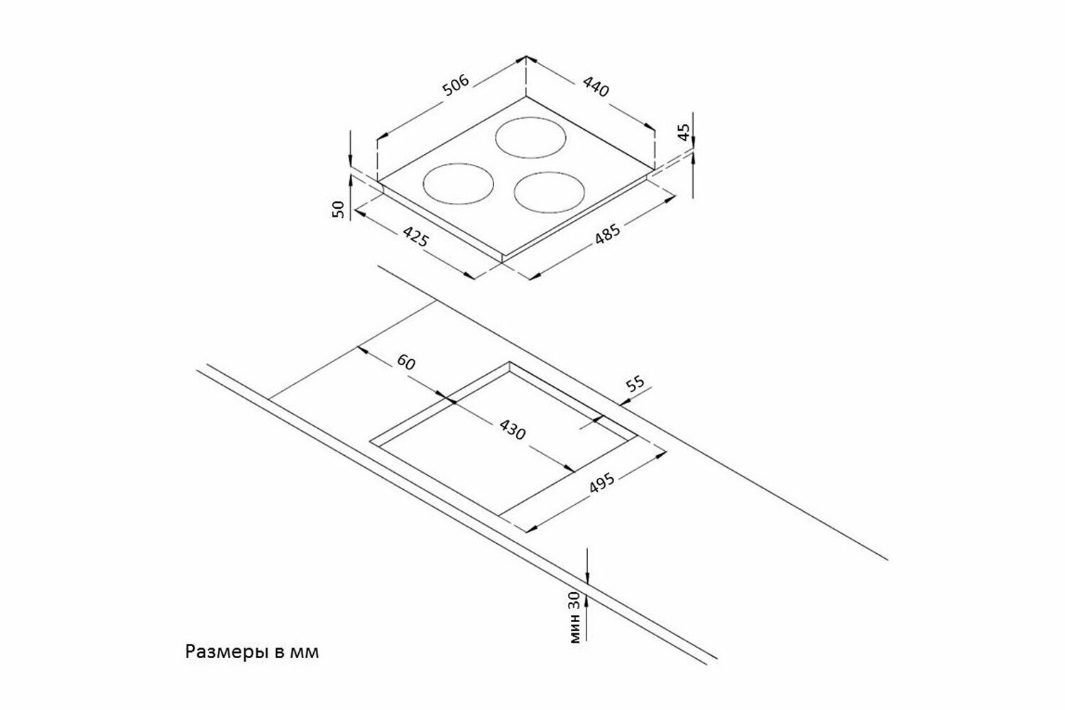 Тип управления: электронный, Размер ниши (Ш*Г): 430*495 мм, Размещение панели управления: спереди/справа, Края панели: скошенные