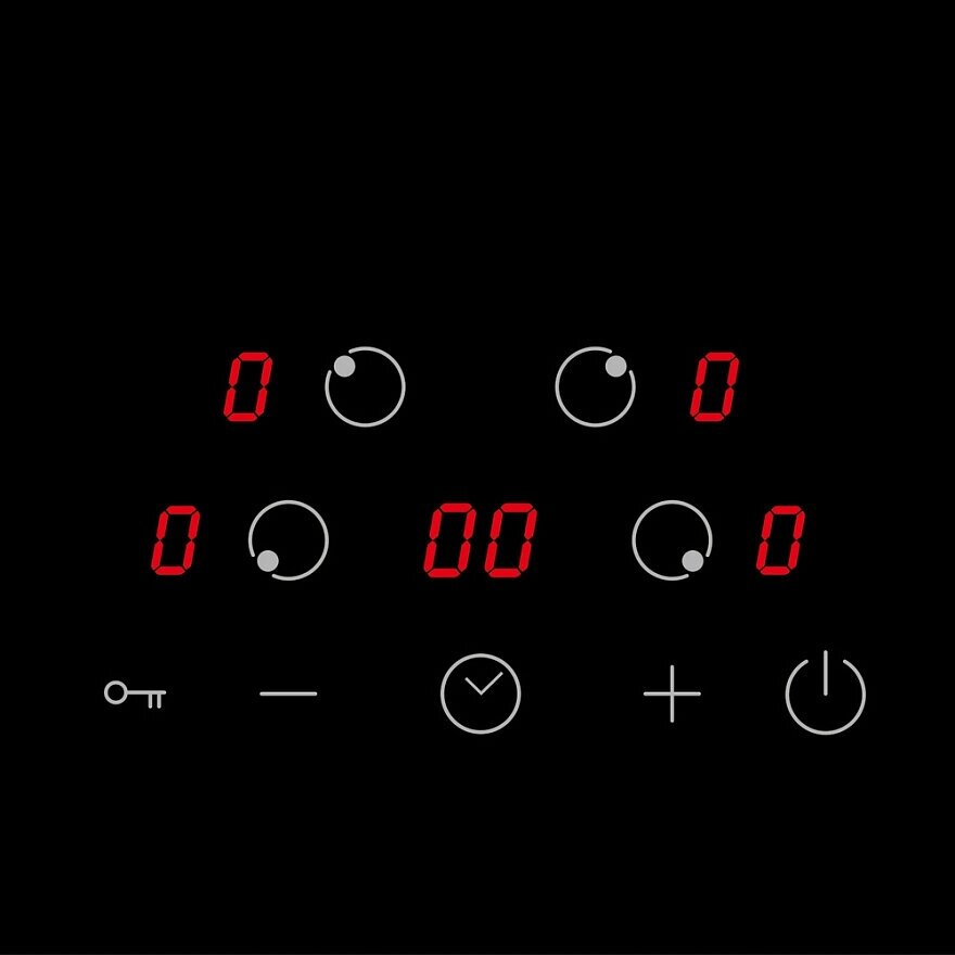 Cкошенные боковые края, Материал поверхности: Стеклокерамика, Блокировка управления, Дисплей: Для каждой зоны нагрева, Таймер, Автоматическое отключение, Уровней мощности: 9,