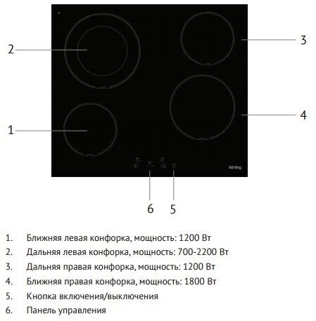 Электрическая варочная поверхность Korting HK 62001 B- оснащена 4-мя конфорками разного диаметра, что позволит готовить на ней блюда с использованием различной посуды. Одну из двухконтурных горелок можно использовать с кастрюлями самого большого размера.