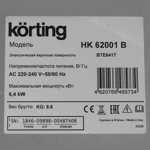 Скачать документы для Варочная поверхность Korting HK 62001 B