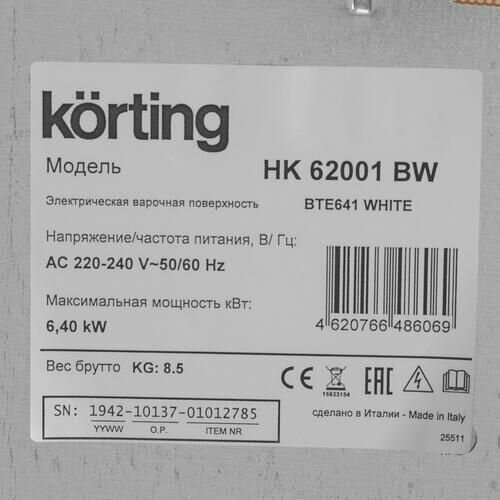 Скачать документы для Варочная поверхность Korting HK 62051 BW