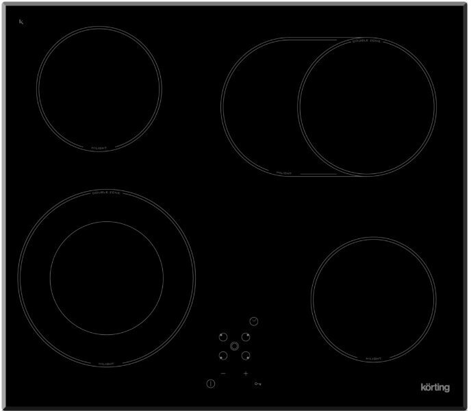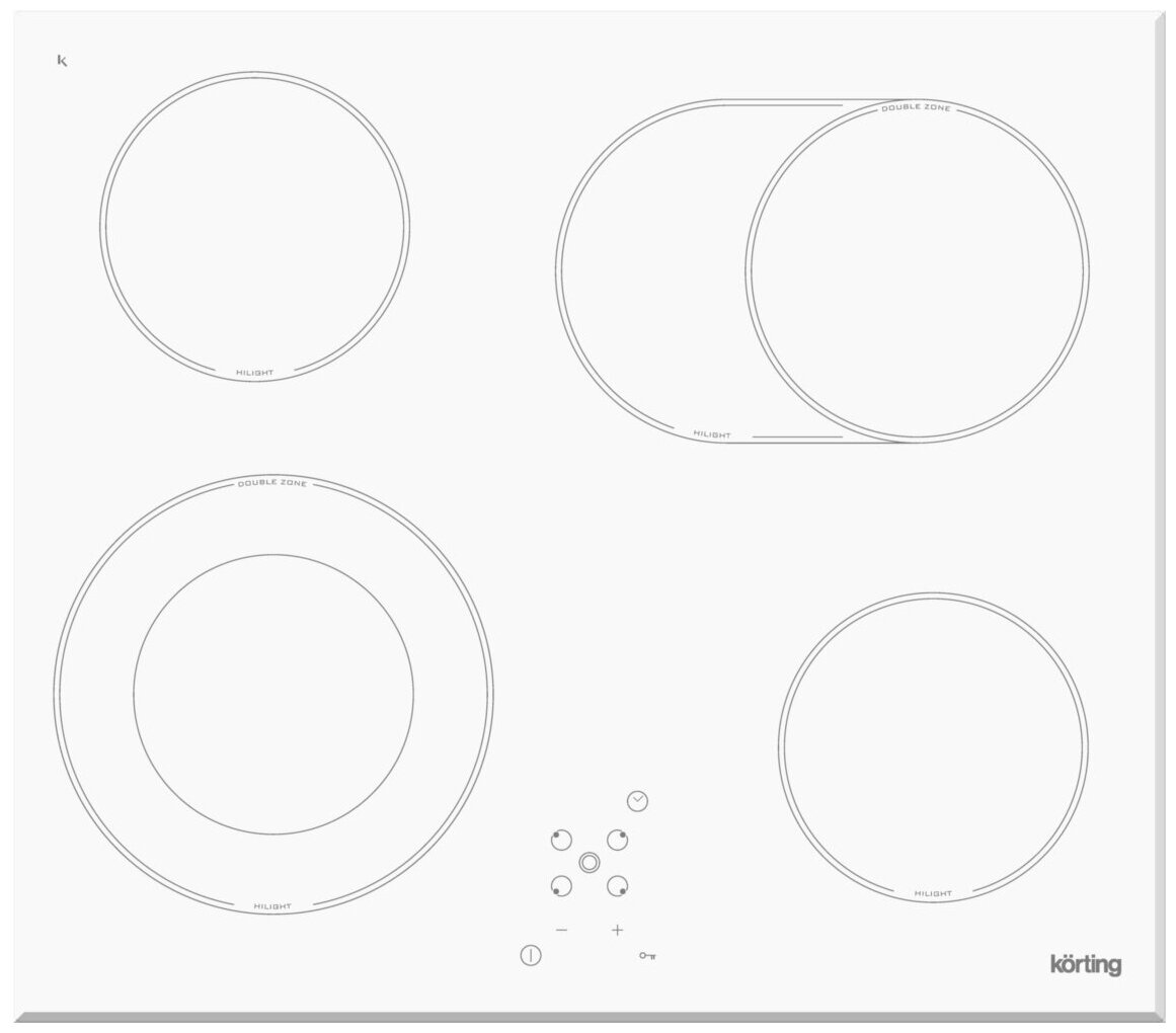 Электрическая варочная поверхность Korting HK 62001 BW-невероятно эффектно: модель белого цвета. Устройство будет отлично смотреться в составе кухонного гарнитура, дизайн которого выполнен в светлых тонах. Есть 4 конфорки, одна из которых двухконтурная.