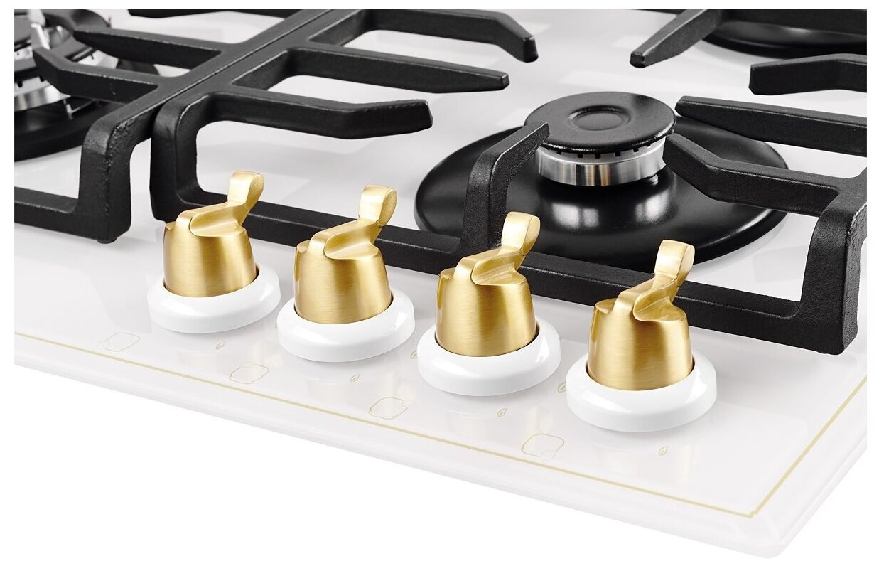 Газовая плита Kuppersberg FQ 602 W изготовлена из закаленного стекла белого цвета. На передней левой стороне расположена горелка WOK мощностью 2,5 кВт. Устройство оснащено газовым регулятором и электрическим розжигом, что делает его использование безопасным и комфортным.