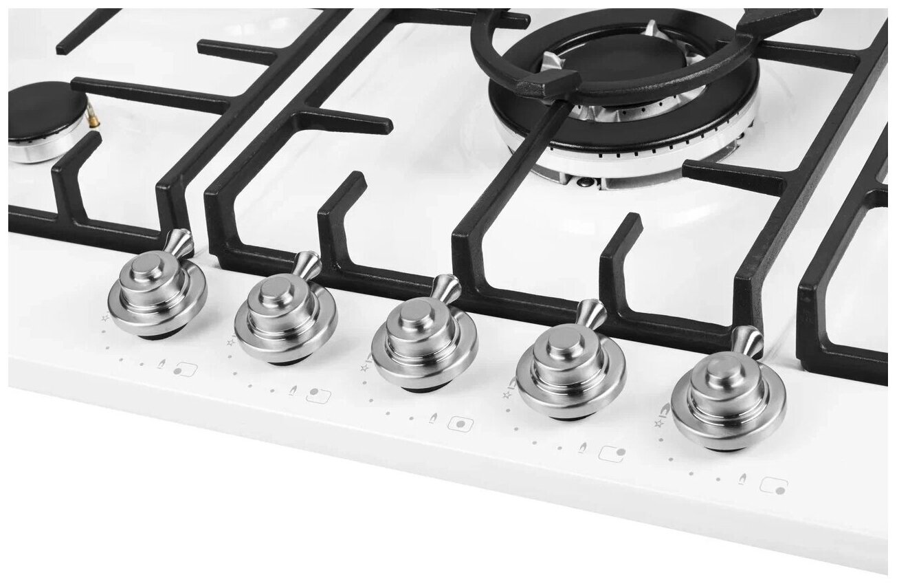 Kuppersberg FV9TGRZ W Silver - настоящий подарок для гурманов. Модель оснащена пятью газовыми конфорками, в том числе высокопроизводительной конфоркой для быстрого приготовления блюд любой сложности. Благодаря надежным чугунным решеткам и специальным кронштейнам посуда всегда остается в устойчивом положении. Функция контроля газа обеспечивает бесперебойную подачу газа и предотвращает утечки.