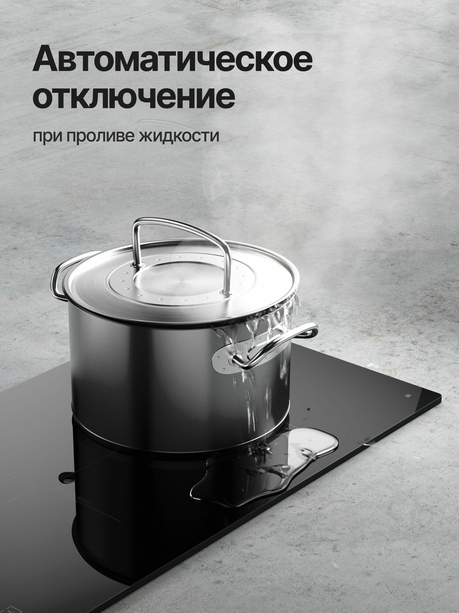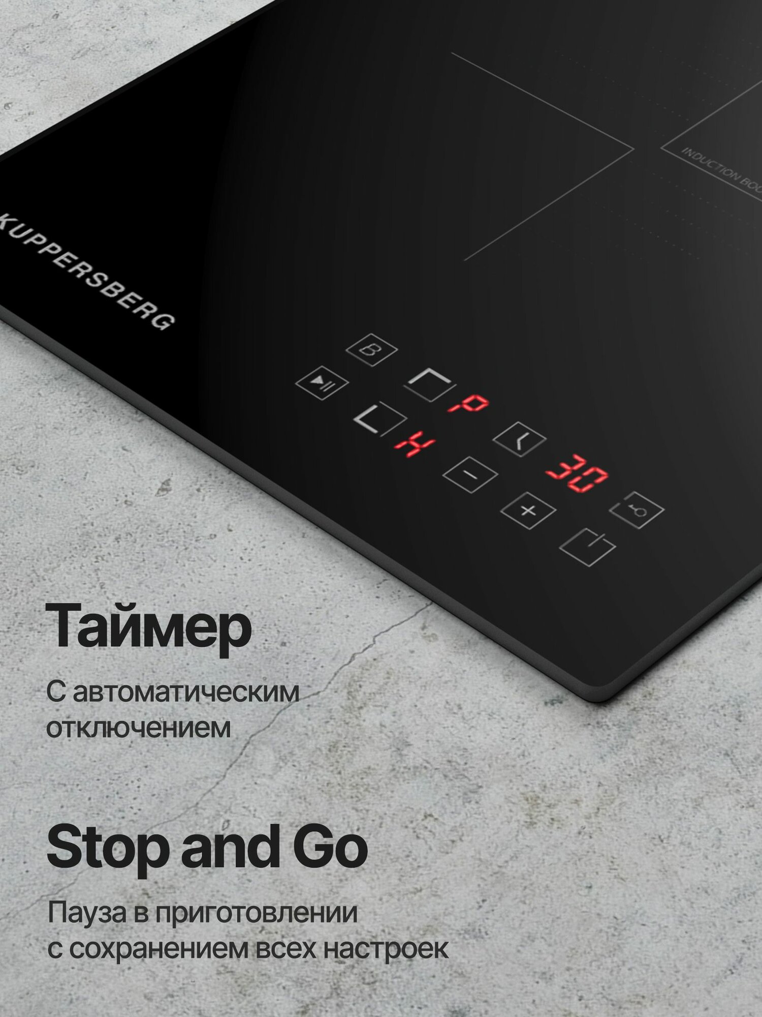 непрерывный индукционный нагрев, блокировка от детей, индикаторы остаточного тепла
