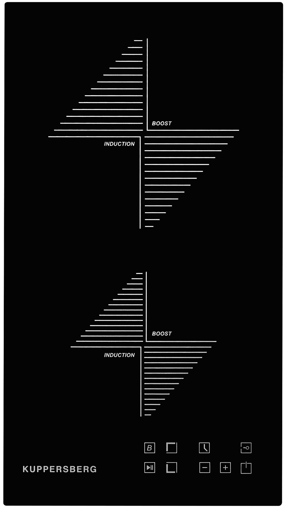 Варочная панель Kuppersberg ICO 301 оснащена двумя индукционными конфорками и включает режим Booster, который временно увеличивает мощность одной из конфорок, например, для быстрого нагрева больших сковород. Удобное сенсорное управление упрощает настройку параметров устройства. Функция «Таймер» повышает комфорт использования.