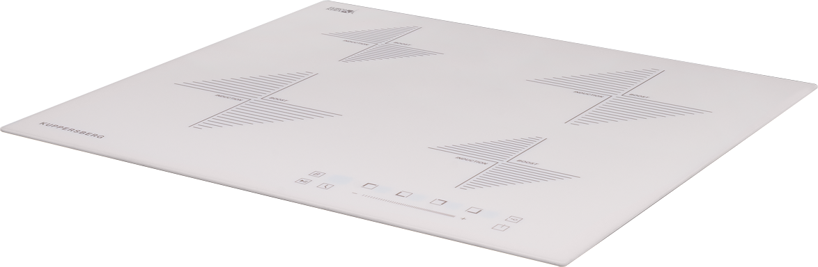 Индукционная плита Kuppersberg ICS 604 W доступна в белом цвете. С помощью функции Booster вы можете временно увеличить мощность конфорок, чтобы быстро вскипятить воду в кастрюле или нагреть сковороду. Выбор настроек осуществляется легким касанием сенсорного экрана. Особенность модели в том, что поверхность изготовлена из высокопрочной стеклокерамики EuroKera (Франция). Стойкость цвета белых плит сохраняется на десятилетия.