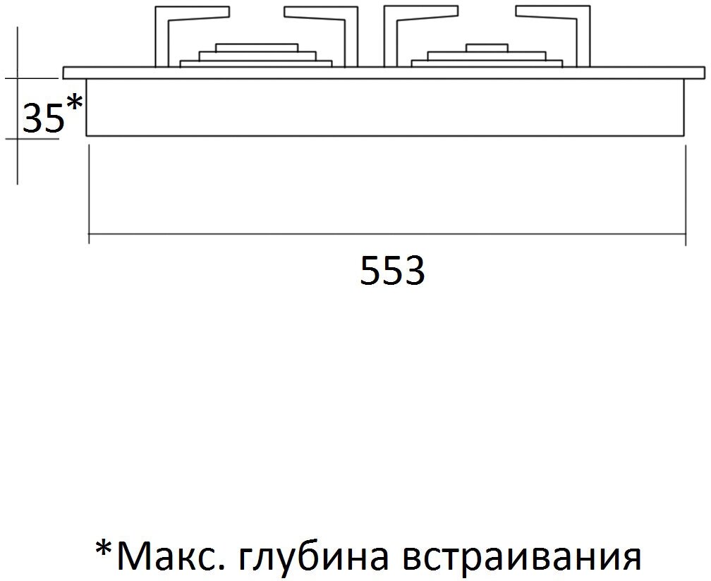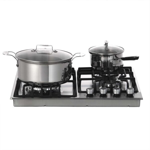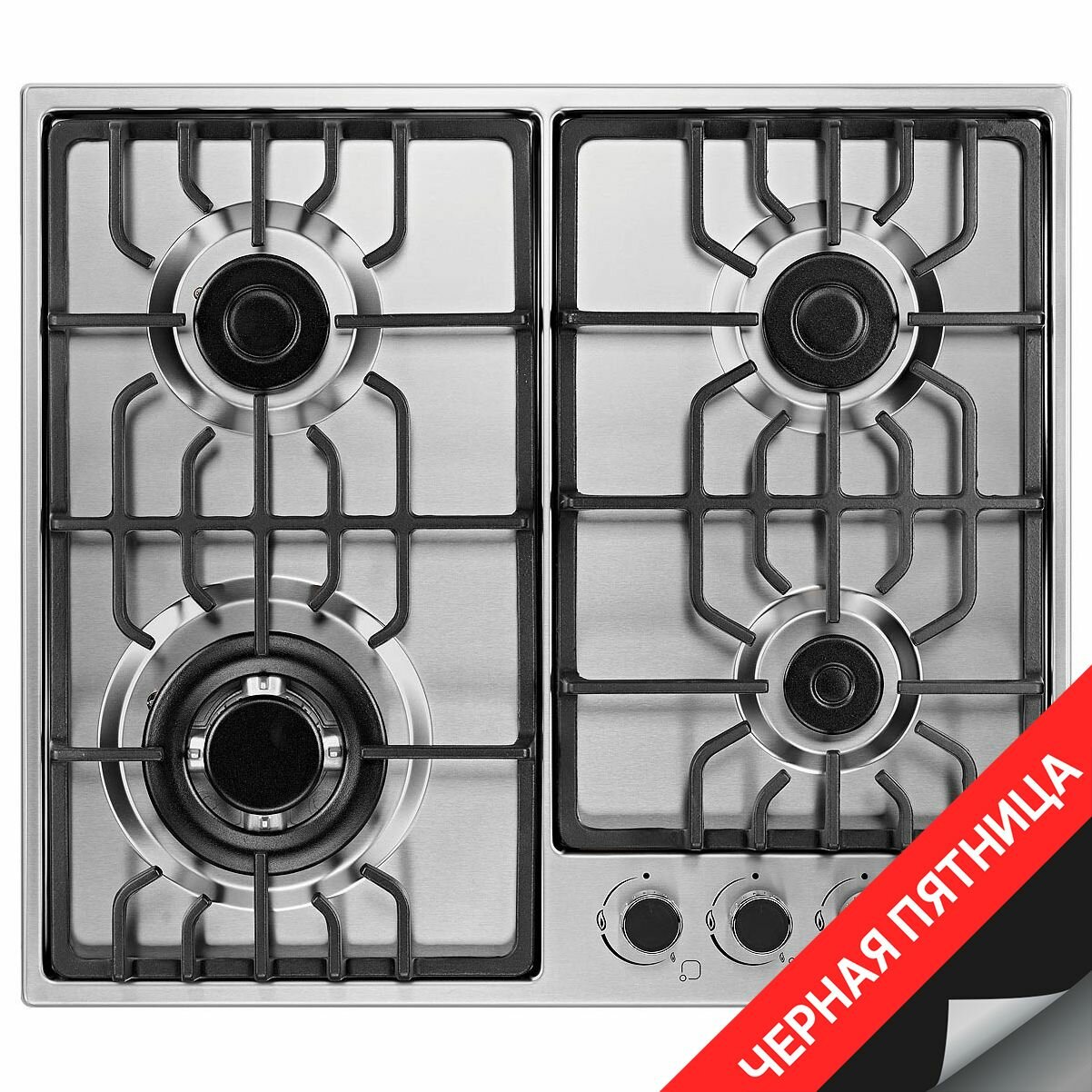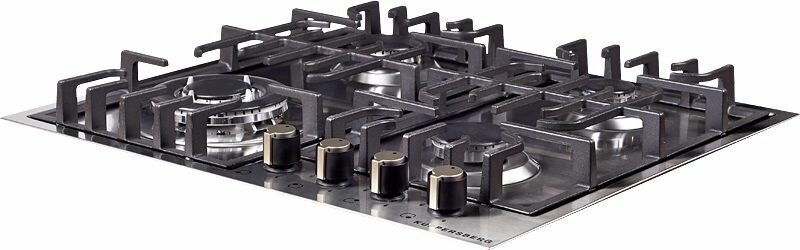мощность конфорок: передняя левая/конфорка WOK 3,8 кВт, передняя правая 1,0 кВт, задняя левая 1,75 кВт, задняя правая 1,75 кВт; форсунки под сжиженный газ; держатель для турки; нержавеющая сталь; чёрно-серебристый цвет фурнитуры