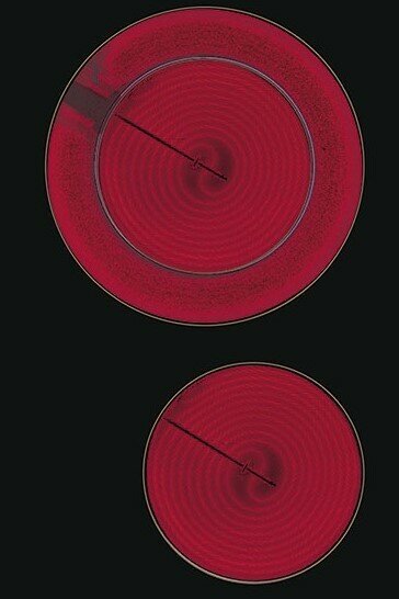 конфорка диаметром 14 см, конфорка диаметром 14,8 см, конфорка диаметром 12 см, с круглой зоной расширения 18 см, конфорка диаметром 14,4 см, с круглой зоной расширения 21,4 см, конфорка диаметром 14,8 см, с овальной зоной расширения 25,3 см