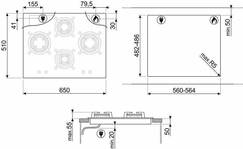 Скачать документы для Газовая варочная панель Smeg PV664LCNR Dolce Stil Novo