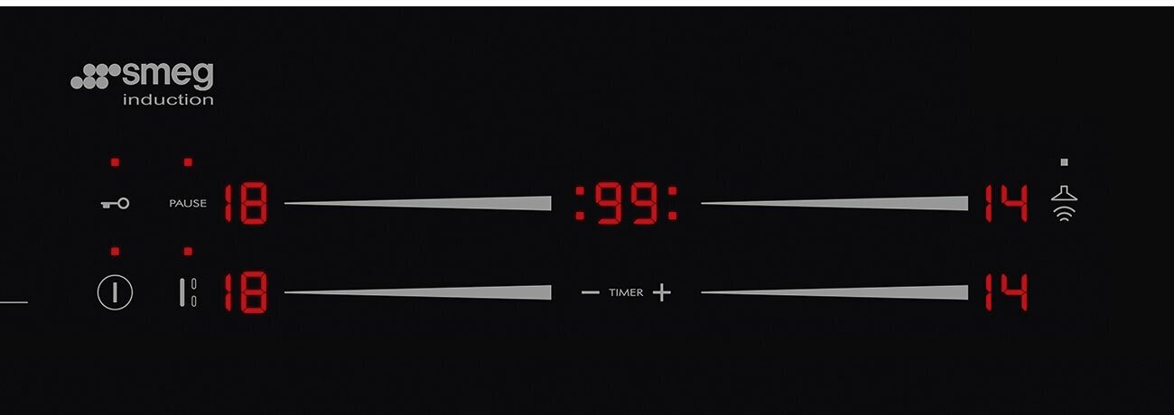 кратковременная пауза, таймер, функция Booster, Индукционный мост, Расширение зоны нагрева, кратковременная пауза, таймер