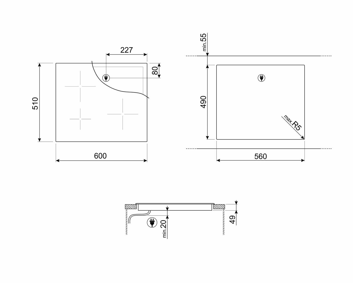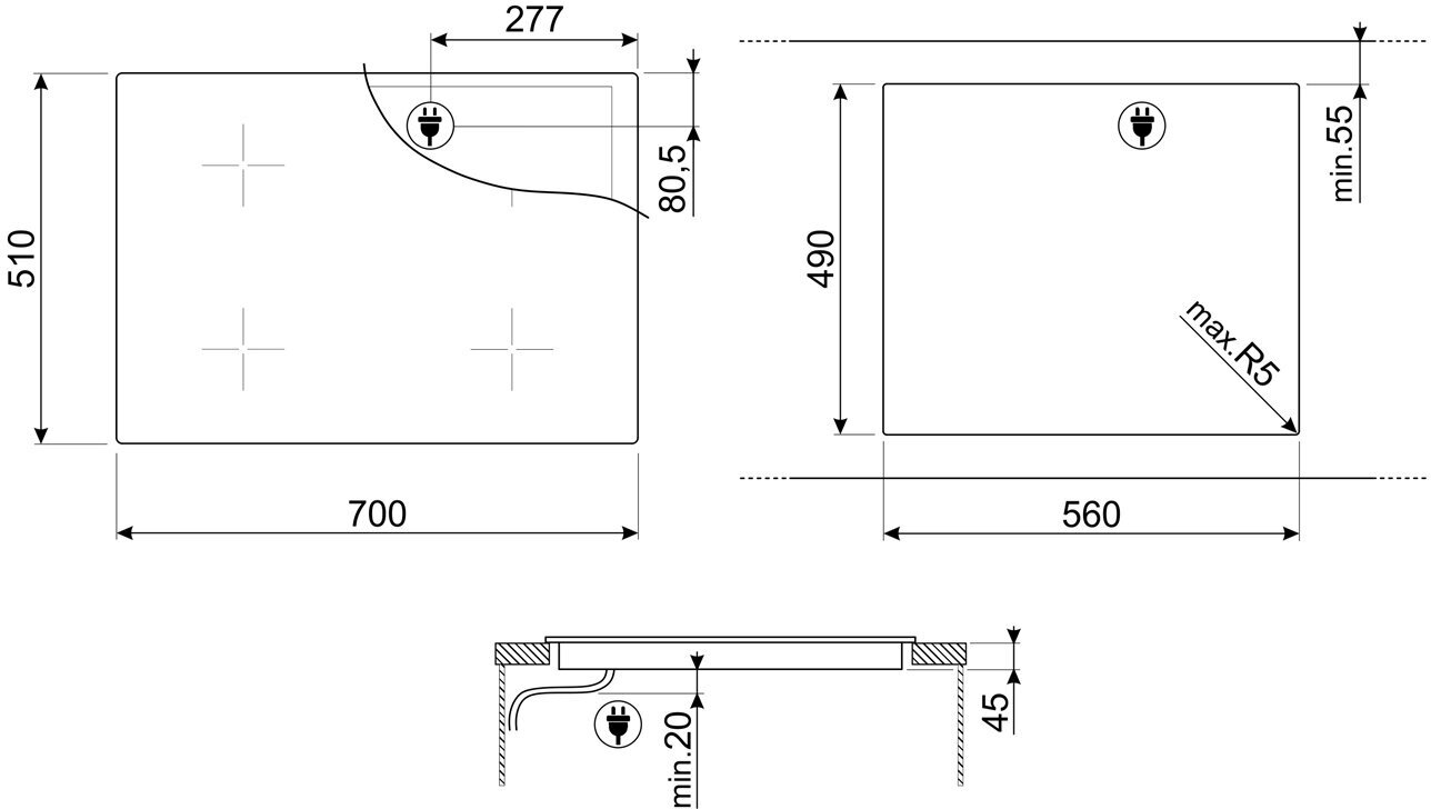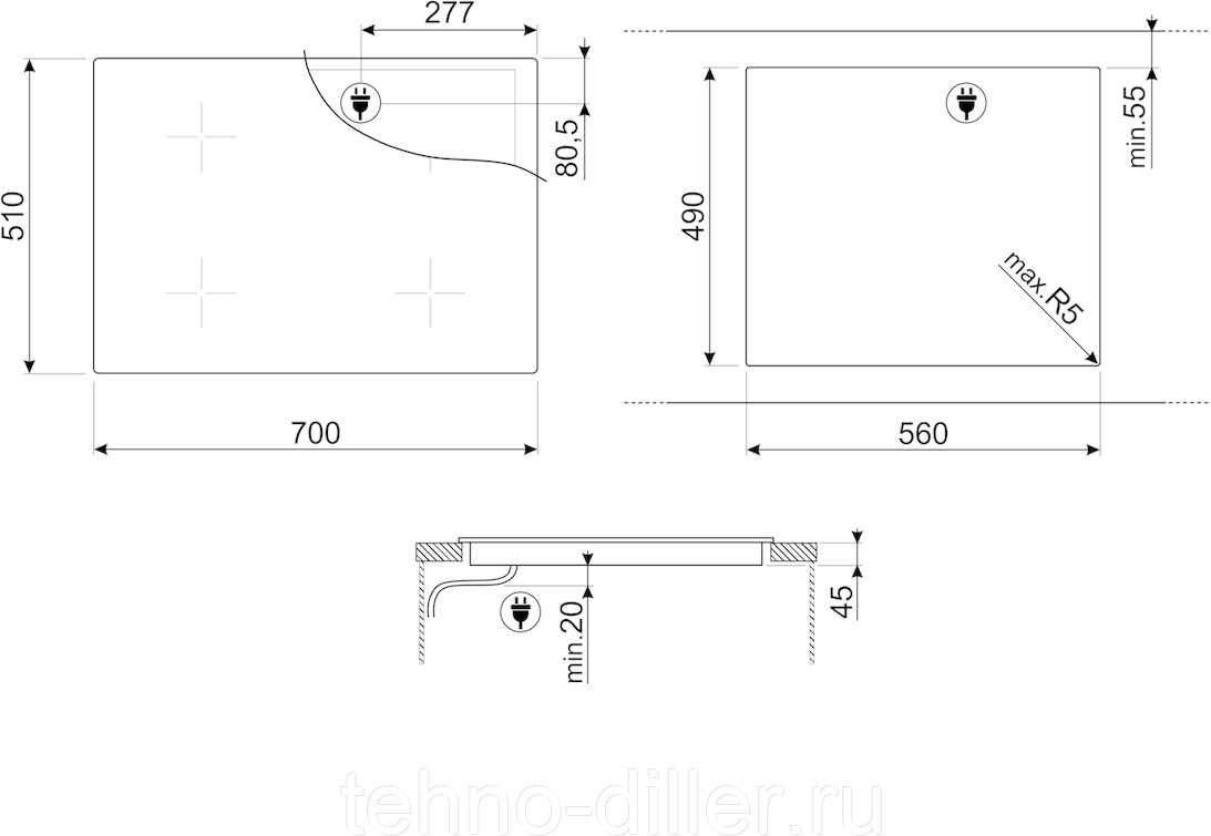 левая зона нагрева объединяется Multizone, функция ECO-Heat, автоматическая синхронизация с вытяжками KIC, охлаждающий вентилятор