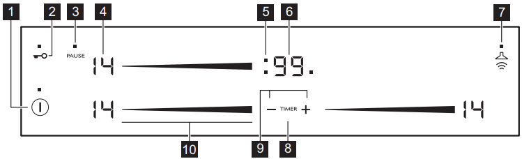 Индикатор остаточного тепла. Акустический сигнал окончания приготовления. Индикация времени приготовления. Индикация уровня мощности