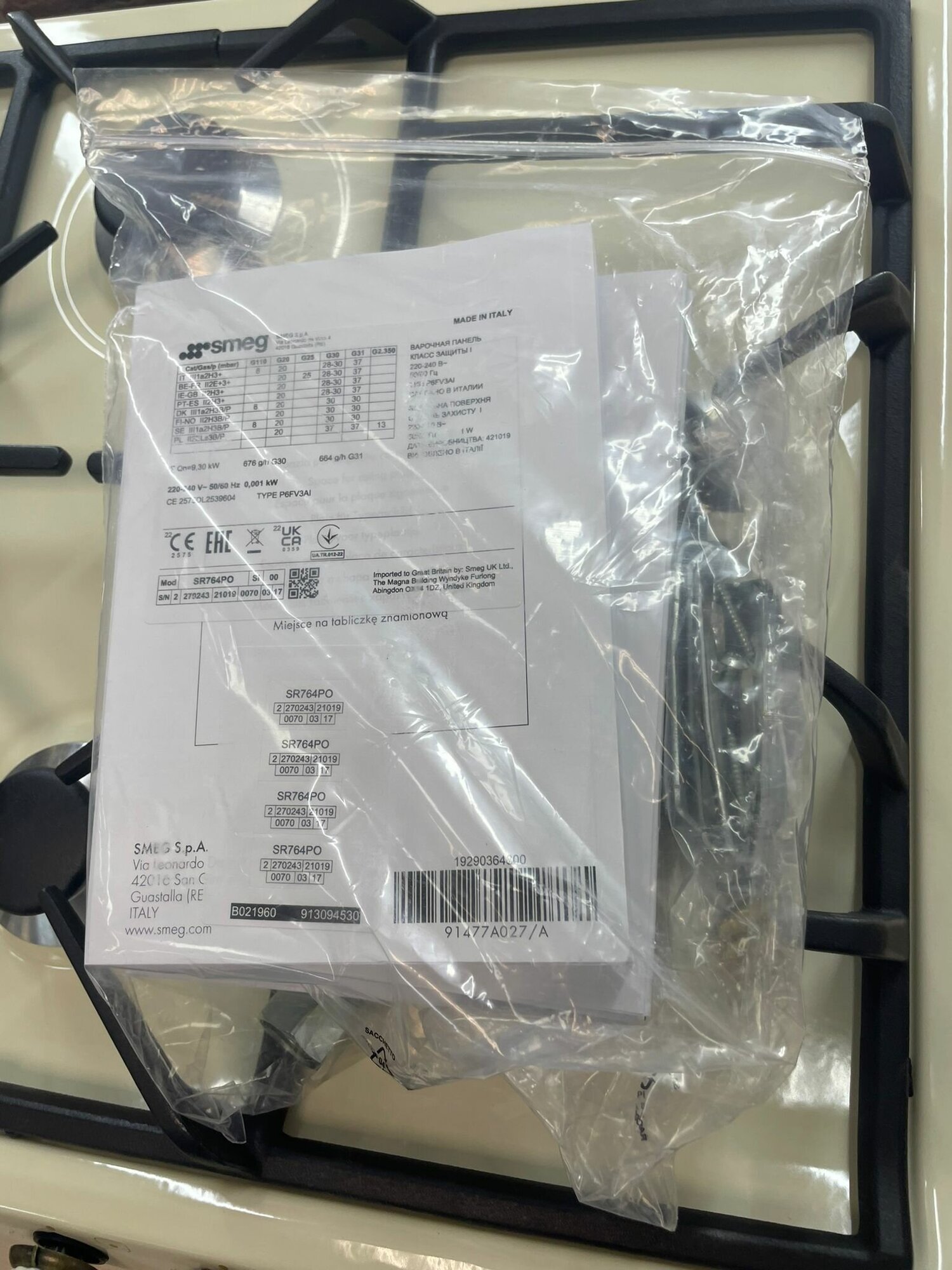 Скачать документы для Газовая варочная панель Smeg SR764PO Cortina