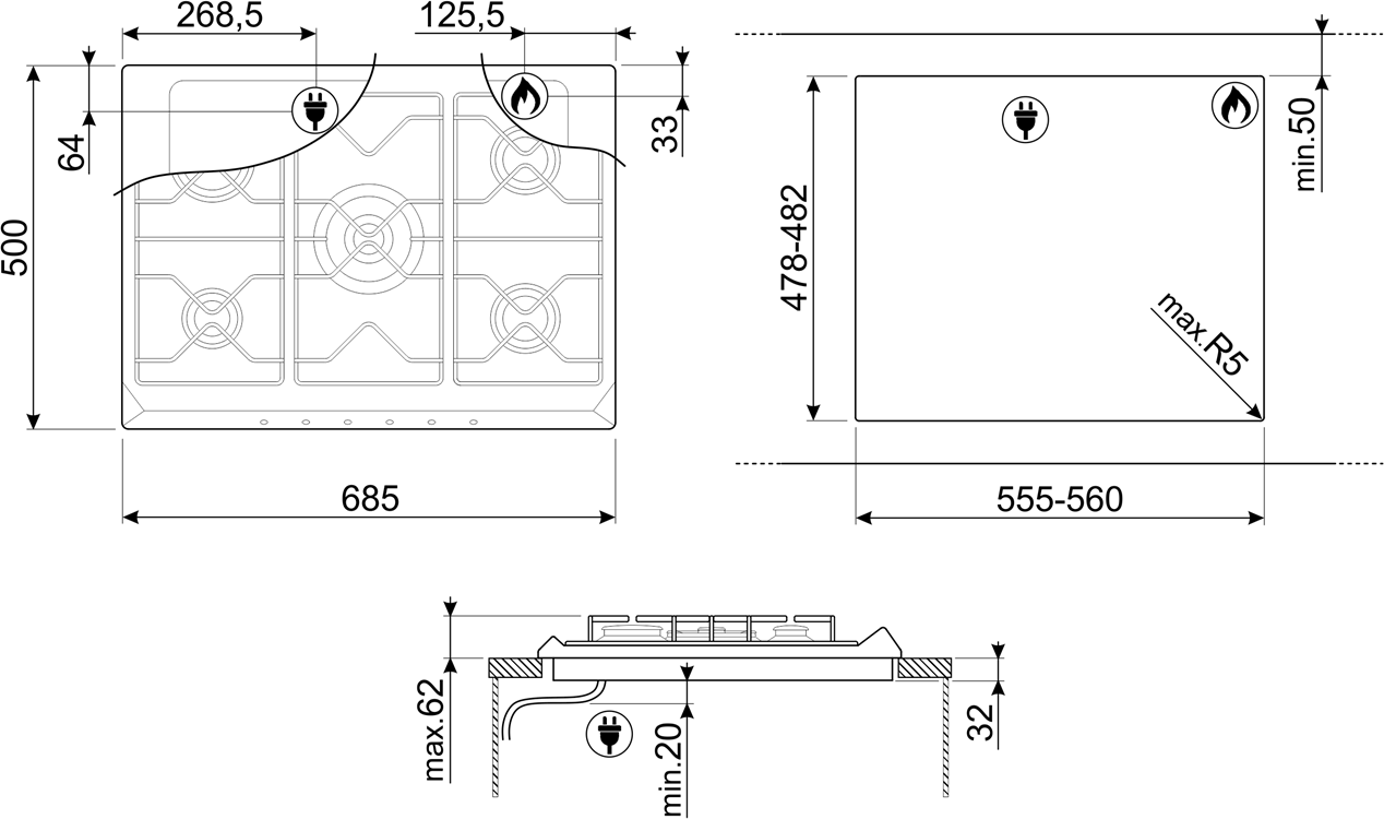 Скачать документы для Газовая варочная панель Smeg SR775PO Cortina