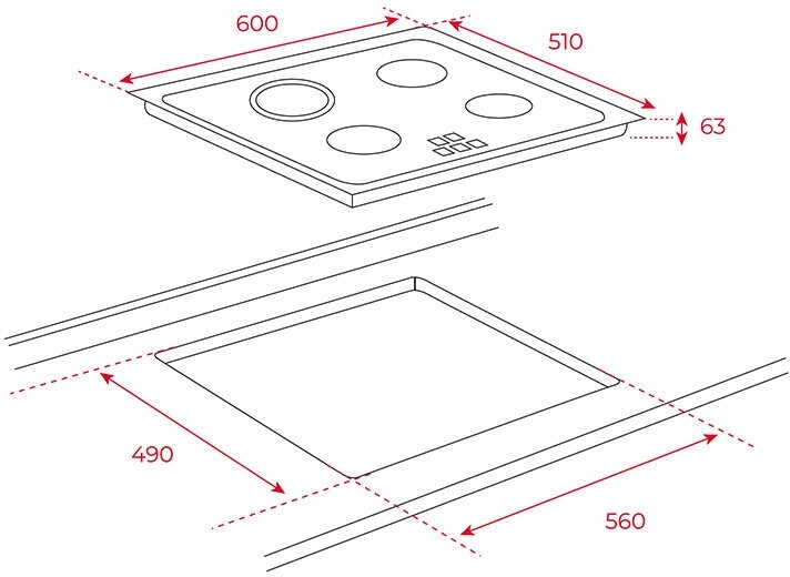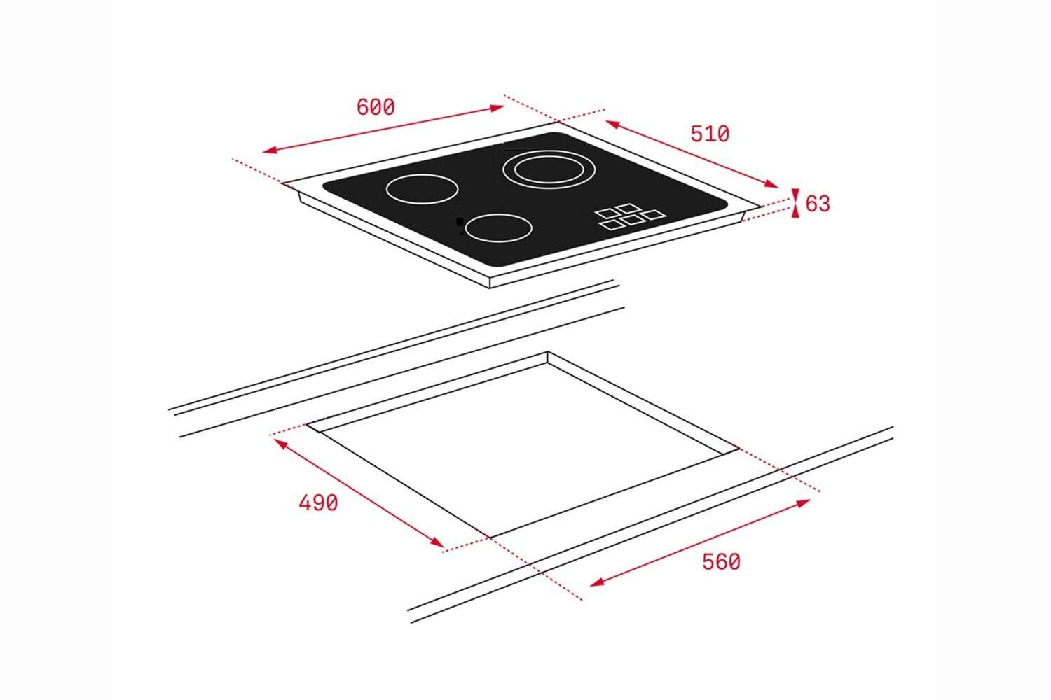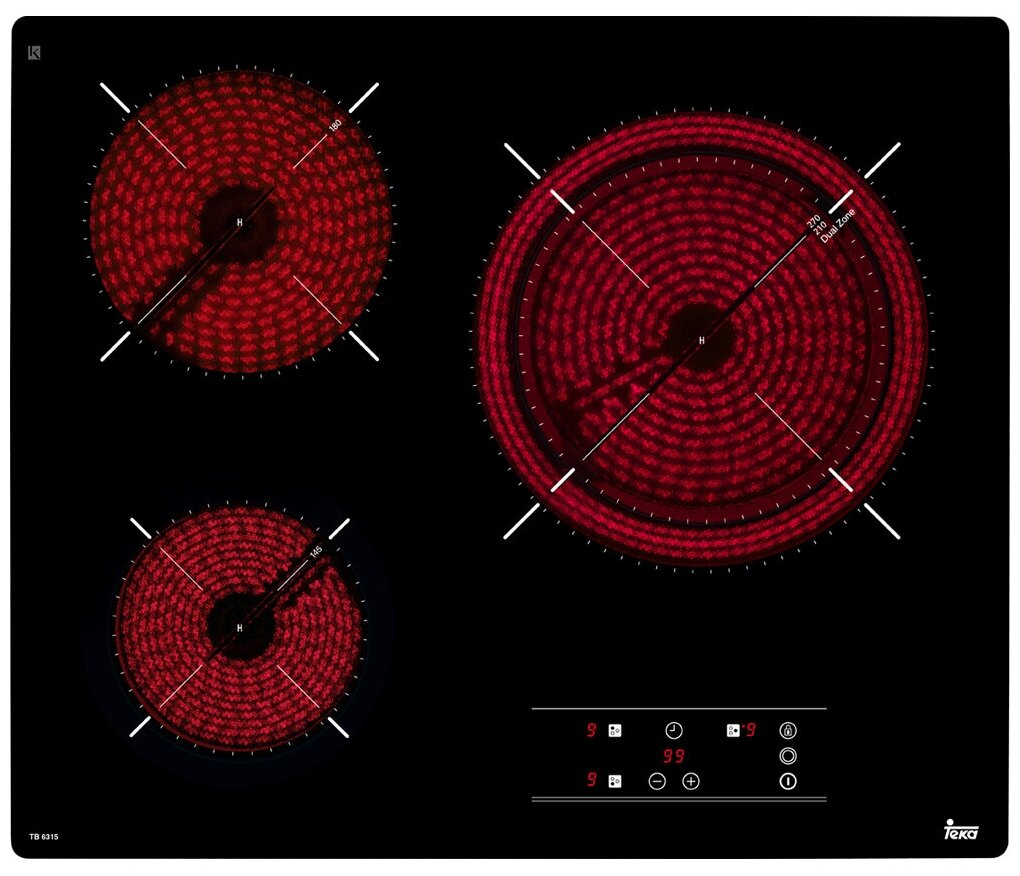 1 двухконтурная конфорка Ø 270/210 мм, 1 конфорка Ø 180 мм, 1 конфорка Ø 145 мм