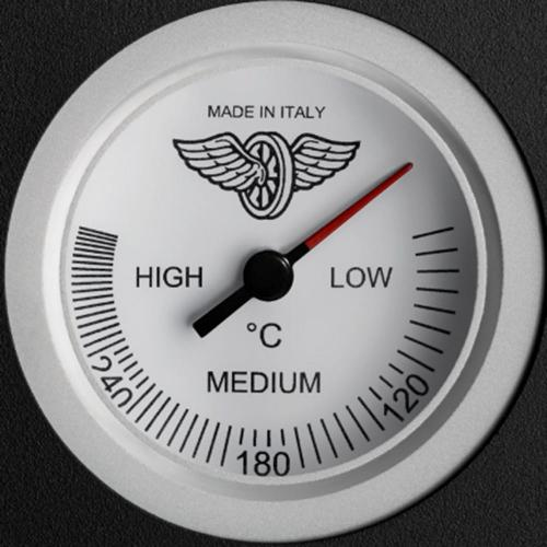 Номинальная мощность: 6500 Вт Сила тока: 28.3 А Поворотные регуляторы из высокопрочной стали Доводчик «Anti-Slam» Аналоговый термометр Латунные конфорки Подставка для равномерного распределения тепла WOK-адаптер Панель конфорок из нержавеющей стали