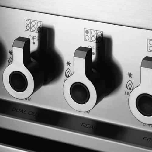 Дизайн варочной поверхности: рамка из нержавеющей стали Рукоятки управления: с металлическим покрытием Тип конфорок: латунь Управление духовым шкафом рукоятки управления сенсорное, с электронным программатором Таймер: сенсорный программатор Термощуп Закрывание дверцы: с доводчиком Одиночное освещение Ножки: нержавеющая сталь