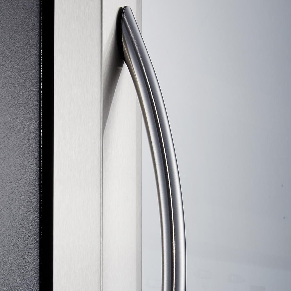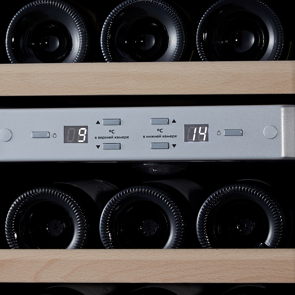 Материал полок: Массив бука Материал корпуса: Металл Индикаторы: Температура, Подсветка Цвет подсветки: Белый Цвет стекла: Зеркальный Петли: Внешние