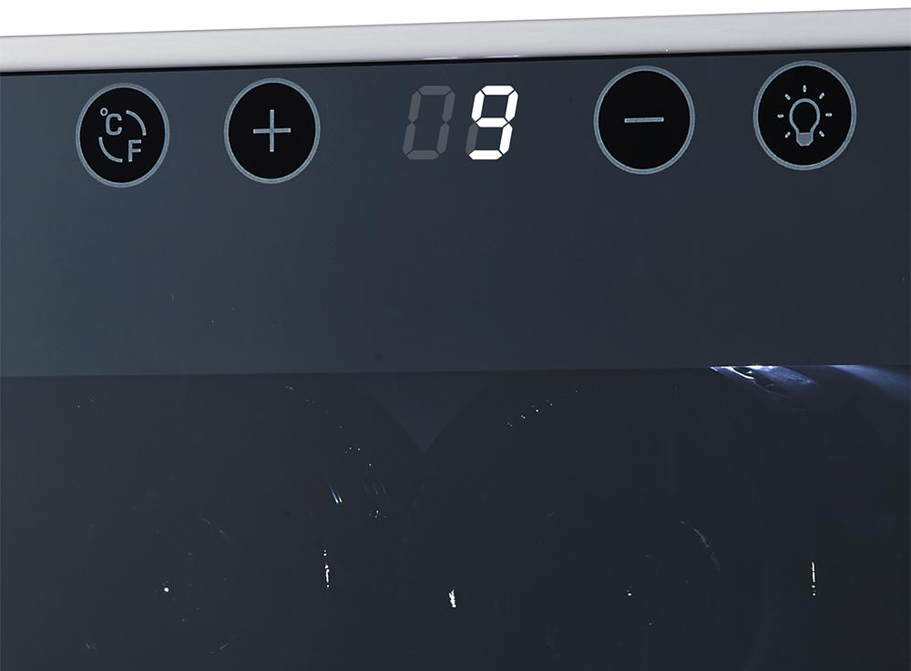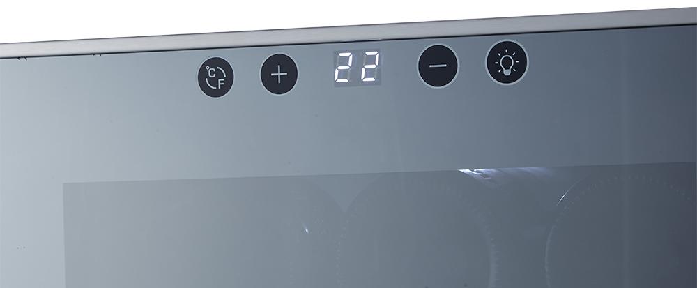 Материал полок: Массив бука Материал корпуса: Металл Индикаторы: Температура, Подсветка Цвет подсветки: Белый Цвет стекла: Зеркальный Петли: Внешние