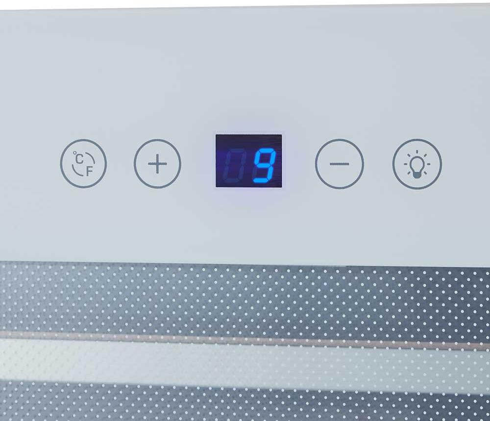 Материал полок: Массив бука Материал корпуса: Металл Индикаторы: Температура, Подсветка Цвет стекла: Точки Память настроек Петли: Внутренние