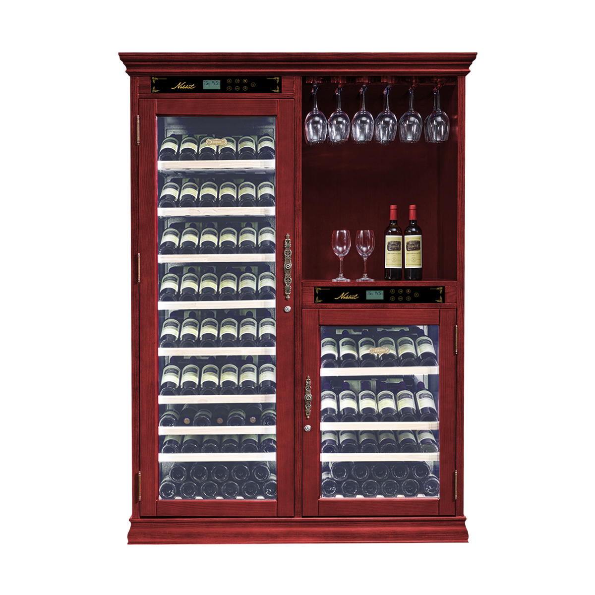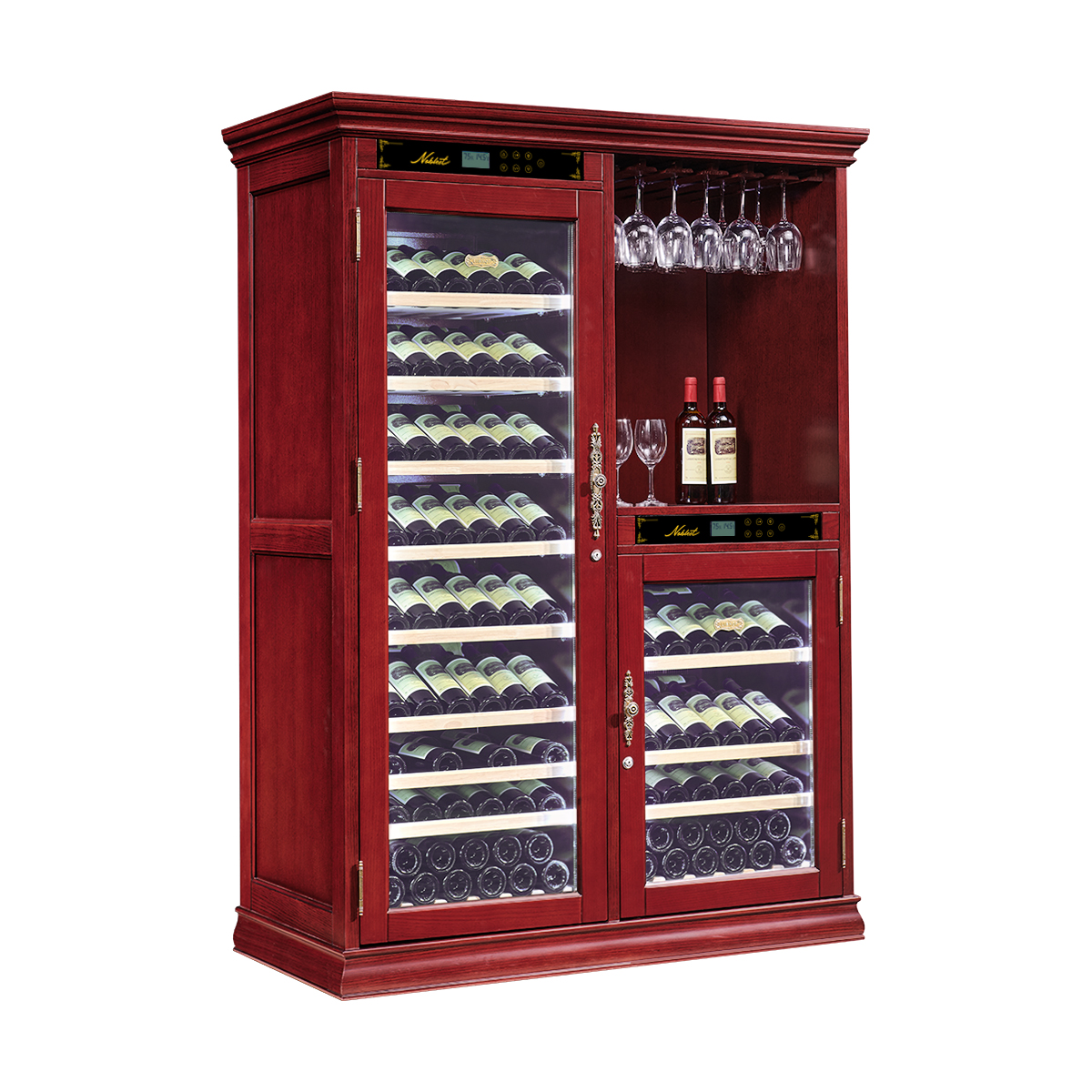 Материал полок: Массив бука Дисплейные полки Материал корпуса: Американский дуб Цвет подсветки: RGB-подсветка Цвет стекла: Прозрачный Память настроек Петли: Внутренние Поддержание оптимальной влажности: активное