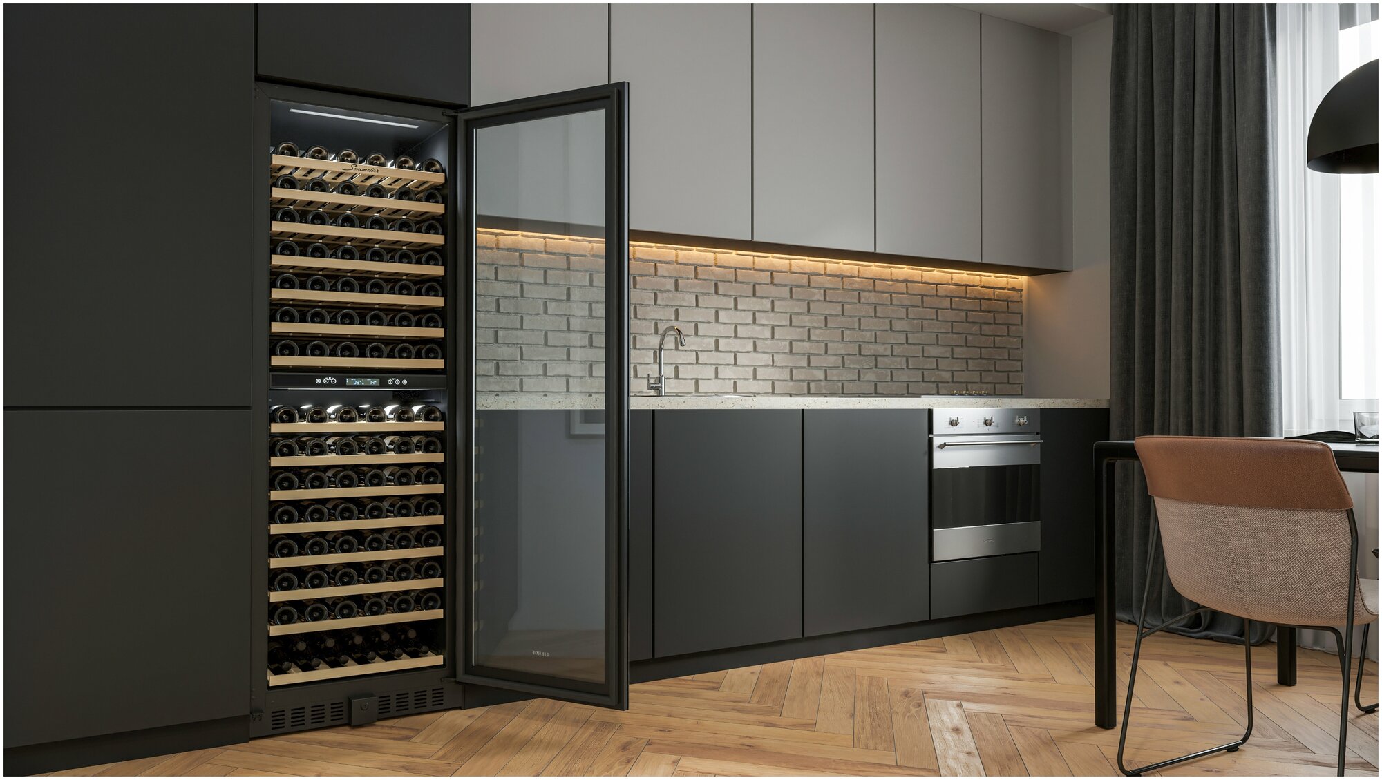 отдельностоящий/встраиваемый; инструкция, полки, ручка, крепеж для ручки, угольный фильтр, ключ замка дверцы, комплект для перевешивания двери