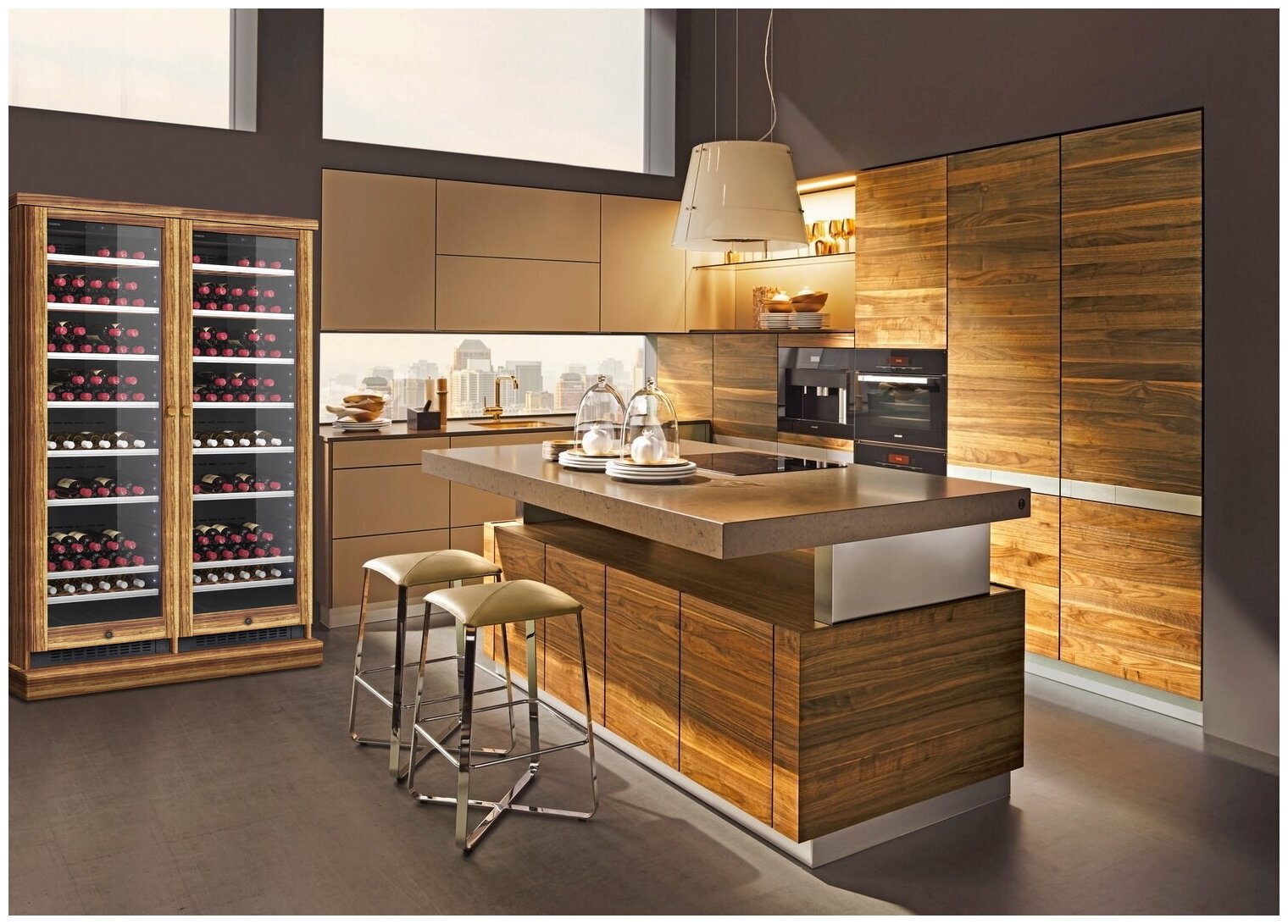 отделка - натуральное дерево зебрано, режимы "Тихая работа" и "Шаббат", функция памяти установленного режима охлаждения, периметральное освещение, стекло с антиультрафиолетовым напылением, зимний режим, тройной стеклопакет в дверце с закаленными стеклами, длина шнура электропитания: 1,8 м