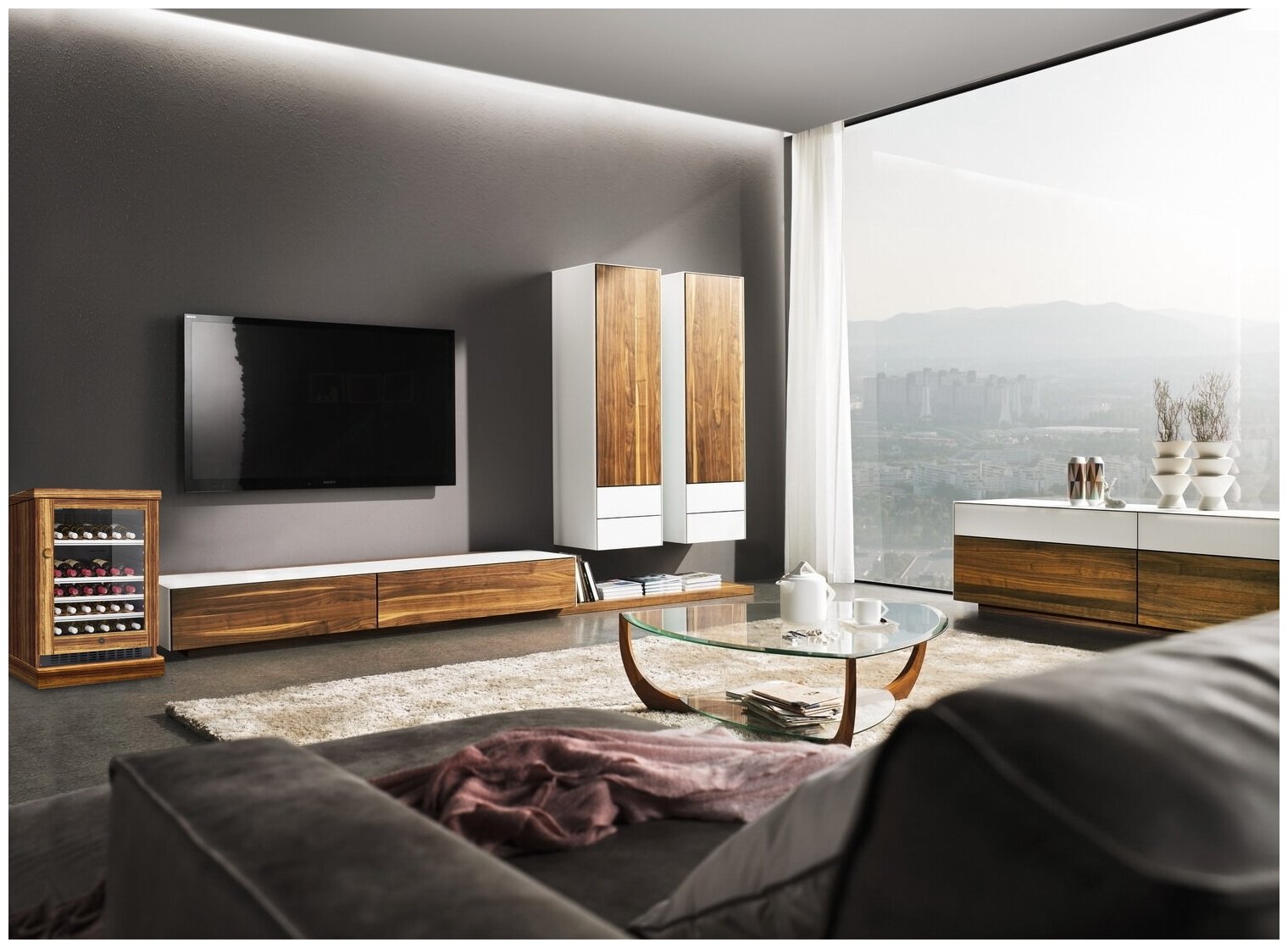 отделка - натуральное дерево зебрано, режимы "Тихая работа" и "Шаббат", функция памяти установленного режима охлаждения, периметральное освещение, стекло с антиультрафиолетовым напылением, зимний режим, двойной стеклопакет в дверце с закаленными стеклами