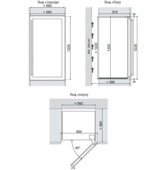 дисплей, перевешиваемые двери, Антивибрационная система, Винная камера, Вправо, Открывающиеся вправо, Светодиодная подсветка
