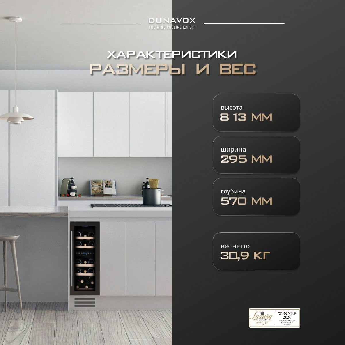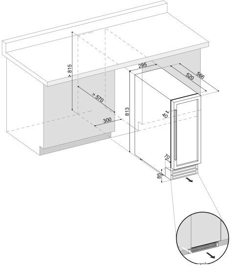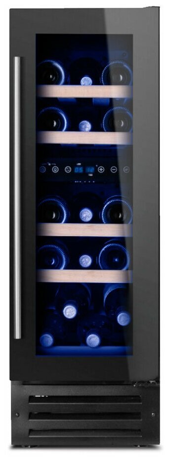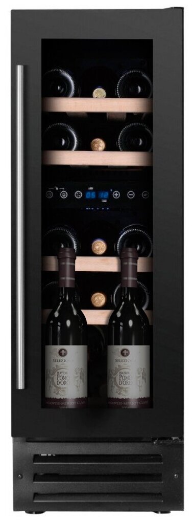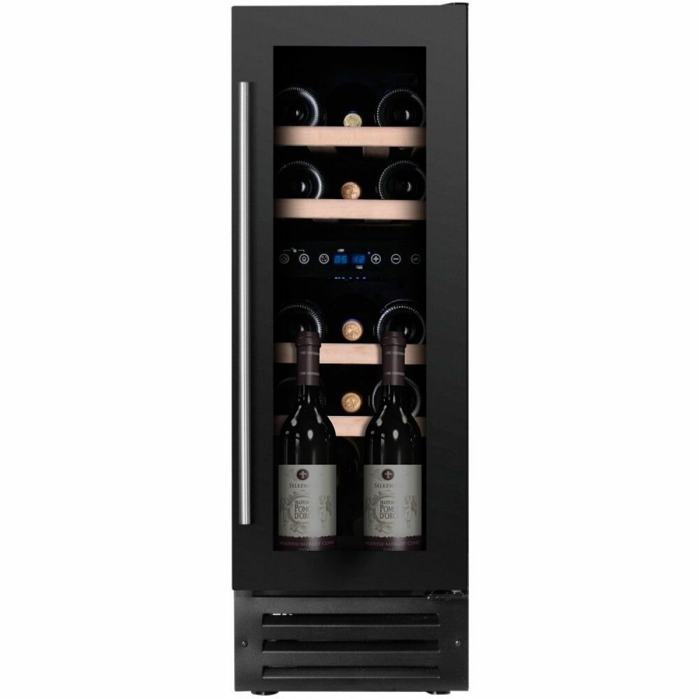 Размер двери (ВхШ), мм: 715х285 Углублённый цоколь Ручка двери: Стальная Материал корпуса: Сталь Демонстрационное освещение Рамка двери: Чёрная Тип встраивания: Под столешницу Термостат: Электронный Тип дерева полок: массив бука