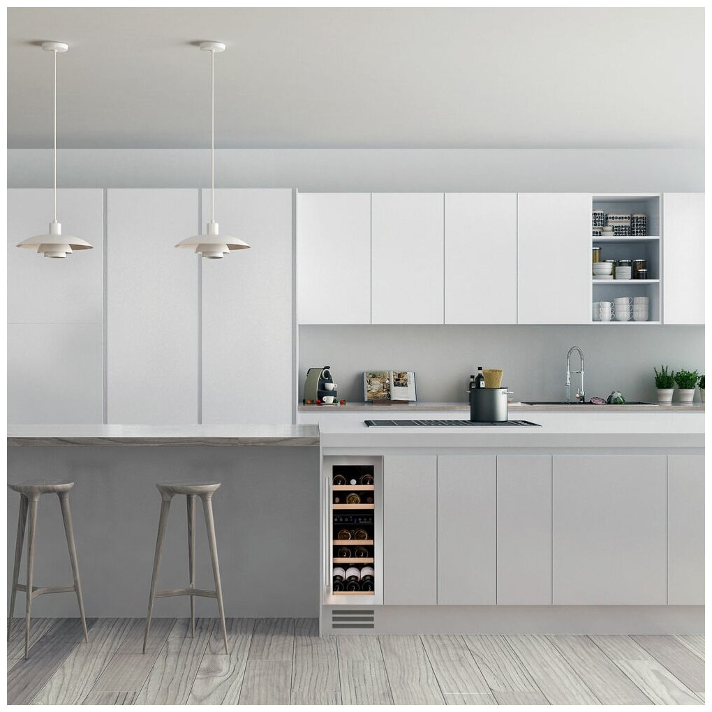 динамическое охлаждение Динамическое охлаждение Динамическая (или вентиляционная) система охлаждения обеспечивает равномерное распределение воздуха вкамере. Благодаря этому нанужном уровне поддерживается нетолько температура, ноивлажность. регулируемые ножки Регулируемые ножки Регулируемые ножки— опция, которой оснащаются винные шкафы любого типа: частично иполностью встраиваемые иотдельно стоящие. Холодильники могут иметь четыре или две ножки изменяемой высоты, которые служат как для выравнивания прибора при установке, так идля изменения его высоты, что особенно важно при частичном встраивании внишу или под столешницу. Для изменения высоты ножку достаточно вывинтить, регулировка может быть как плавной, так инанескольких фиксированных уровнях. Диапазон изменения размера зависит отмодели: максимальное его значение может достигать 7см, аминимальное— 2см.