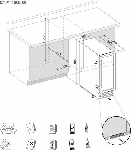 Размер двери (ВхШ), мм: 715х285 Углублённый цоколь Ручка двери: Стальная Материал корпуса: Сталь Демонстрационное освещение Тип встраивания: Под столешницу Термостат: Электронный Тип дерева полок: массив бука