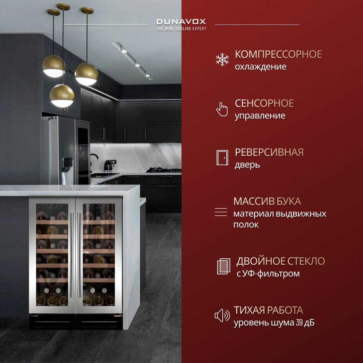 дисплей, перевешиваемые двери, Антивибрационная система, Винная камера, Влево, Вправо, Дизайнерское оформление, Ручки легкого открывания, Светодиодная подсветка, Система контроля влажности