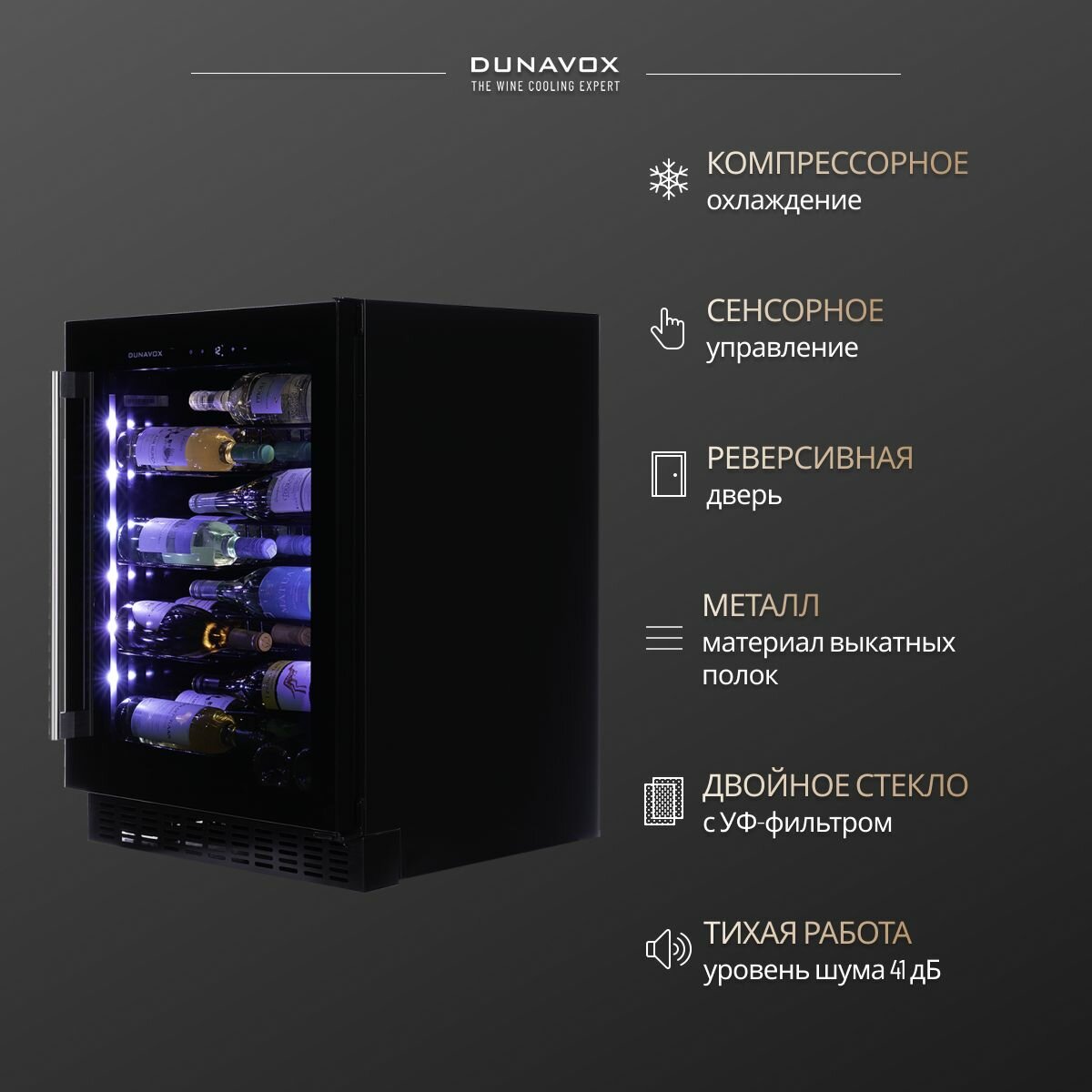 коллекция встраиваемых винных шкафов dunavox