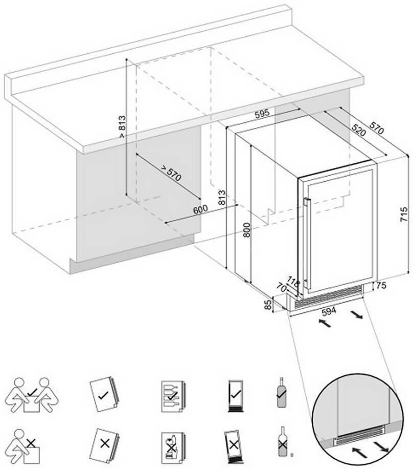 дисплей, перевешиваемые двери, Антивибрационная система, Винная камера, Вправо, Открывающиеся вправо